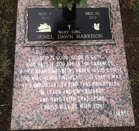 Tragedy can cause drastic measures in not only our thinking but in our actions and then if the Holy Spirit has His way, we commit our way to the Lord. As we put our trust in Him our thinking clears. God tells us (“Trust in the Lord and do good.”) Janel Dawn in her sorrow before she died, several weeks before actually, wrote, “God is good, good is God” I love when the scriptures talk about the dawn because it reminds me of our precious ๐ daughter, (“He will make your righteousness shine like the dawn”) Janel’s wise words also prompting us. “Find that Brightness! Learn and understand!” I wish I could have been there for her during her troubled times. I would have hugged her and told her it was gonna be alright. That Jesus knew her sorrow and it was for her sorrows and ours that He died. Not just for our sorrows but for our sin. But I wasn’t there. I was in a different city without a clue of her pain and abuse and loss she was experiencing.